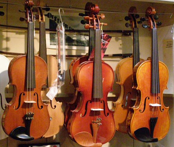 Muziekwinkel Stage Music Shop is de viool-specialist in de regio. Eigenaar Leen Mulder speelt zelf viool, mandoline, ukelele en gitaar. In de jaren tachtig maakte hij als fiddler deel uit van de bekende Nederlandse countrypopgroep Hobo String Band. Het vijftal is overigens weer in de oefenruimte gedoken en heeft al diverse succesvolle optredens achter de rug. Violen heeft Stage Music Shop voor jong en oud, van klein (1/32) tot groot, en in ' gewone' maar ook afwijkende vormen. Bijbehorende accessoires als stokken, kinstukken en hars zijn uiteraard ook verkrijgbaar en u/jij bent verzekerd van een professioneel advies.